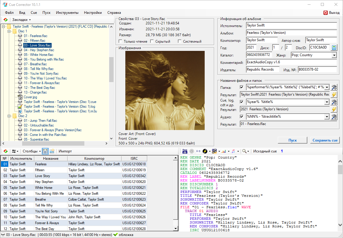 CUE Corrector is a multifunctional program for working with index cards, which has a wide range of possibilities for reading, creating and editing them. The program is capable of performing many operations that arise during the use of index cards, from a simple replacement of an audio file extension in it to a complete change of its content, without making any changes to the index markup.