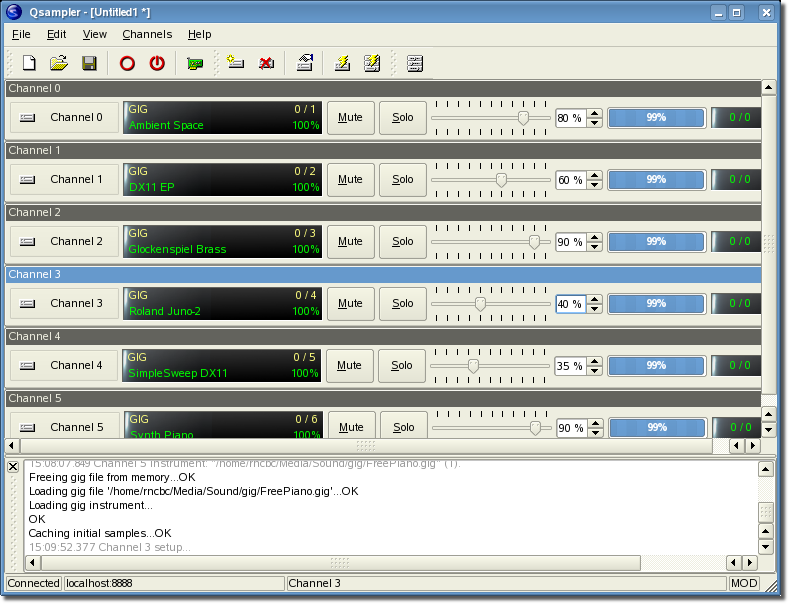 Qsampler is a linuxsampler GUI front-end application written in C++ around the Qt4 toolkit using Qt Designer. For the moment it just wraps the client interface of LinuxSampler Control Protocol (LSCP)