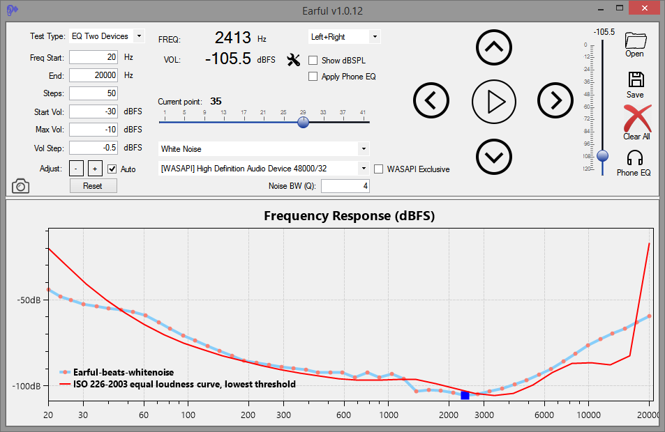 Earful is an app designed to measure and evaluate the lower threshold of hearing across a frequency spectrum. It is designed to run on Windows and support ASIO, WASAPI, and Direct Sound audio devices. Use with headphones is recommended for greater accuracy and noise elimination.