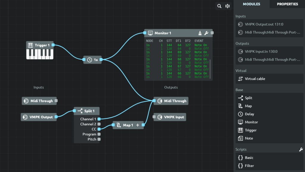 Mididash is an open source MIDI routing software with a node-based interface and Lua scripting. A modern take on programs like MIDI-OX.