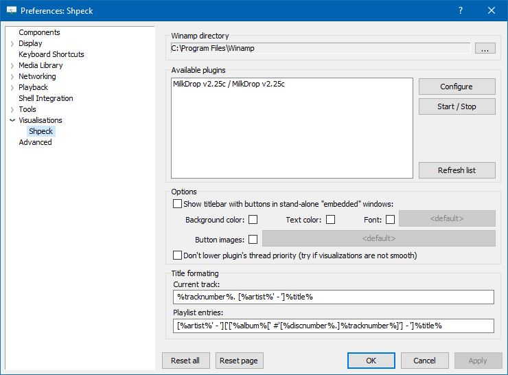 Window title — to display the currently playing track in the foobar2000 window or taskbar.