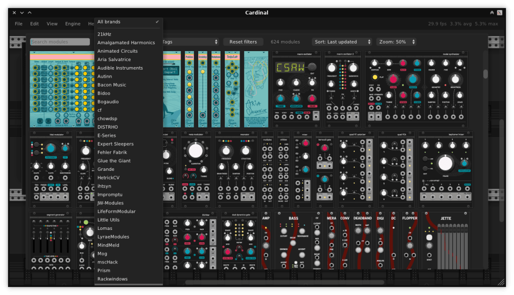 A fully free and self-contained modular synthesizer based on the popular VCV Rack. Available in AudioUnit/CLAP/LV2/VST2/VST3 plugin formats and as a standalone app for FreeBSD, Linux, macOS, Windows and the Web.