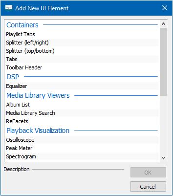 Before some foobar2000 components can be utilized, the component’s visual interface must also be added to the Default User Interface in order to be seen or interacted with. It just takes a few steps to add new panels and interfaces to foobar2000.