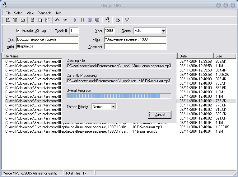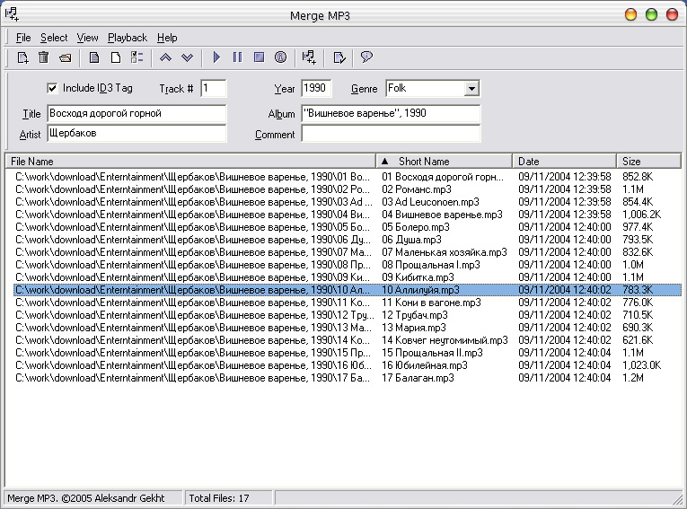 It is often necessary to merge multiple sound files into one recording. This need may arise for various reasons: merge ripped CD tracks into one, combine multiple chapters of an audiobook, etc. There are many great programs to achieve this, but very few of them are actually free. I’ve discovered that while all of these programs perform the task well, they also contain lots of other features, making them too complicated for the tasks. This is why when I needed the plain vanilla merging utility, I could not find one that was free – and decided to write one myself. The added benefit of writing one myself, of course, is that it has exactly the features I need – and none that I don’t. When it was done – I decided to give it away for free – to alleviate some of the pains I had.