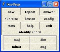 Tksolfege is an ear training program for learning to recognize chords, intervals, perform rhythm dictation, solfege dictation and singing solfege sequences. The program requires Tcl/Tk 8.4, however the Windows executable has Tcl/Tk builtin.