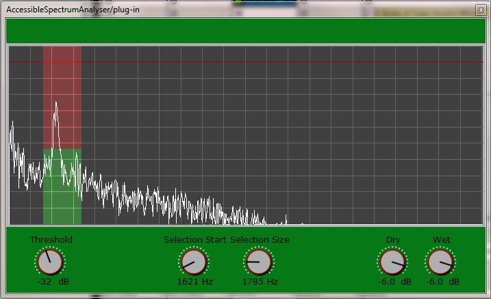 AccessibleSpectrumAnalyser is a real time spectrum analysis plug-in that allows visual impaired users to as the accessible peak meter. Instead of monitoring the amplitude of the audio signal though, you will be monitoring the frequency components of the signal within a customizable selection of frequencies.