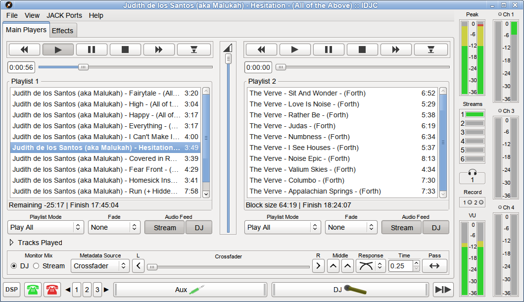 - Two main media players with crossfader