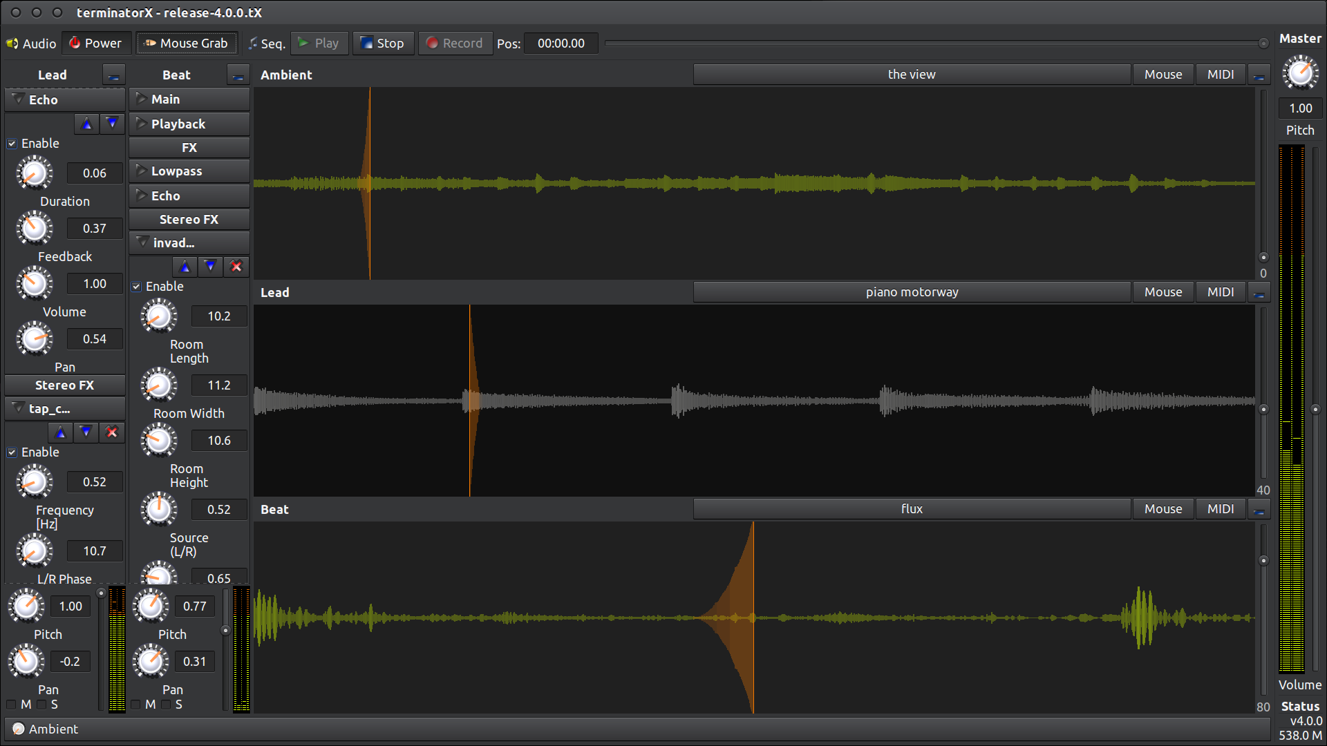 This software allows “scratching” on digitally sampled audio data (*.wav, *.au, *.ogg, *.mp3, etc.) the way hip hop DJs scratch on vinyl records. It features multiple turntables, realtime effects (built-in as well as LADSPA plugin effects), a sequencer and MIDI interface – all accessible through an easy-to-use gtk+ GUI. This software is designed to run under Linux, FreeBSD and the like.